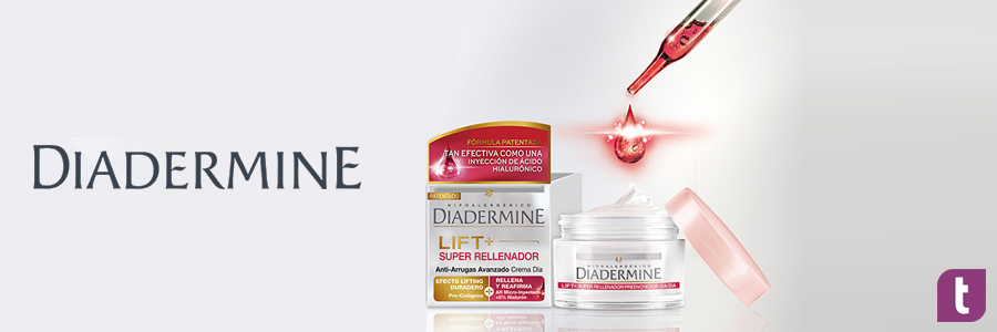 La fórmula patentada de DiadermineLift+ SuperRellenador Crema de Día Anti-Arrugas con Hialuróncombina activos hialurónicos que actúan desde el interior para proporcionar una piel tersa y con un aspecto fresco y jovial, con activos reestructurantes y redensificantes altamente eficaces, para mejorar la firmeza, flacidez y definición de los contornos. Además, su textura rica y sedosa proporciona una sensación inmediata de confort, dejando una piel hidratada, suave y elástica, con un delicado perfume.